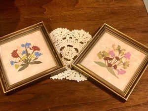 Vintage pressed dried flowers art in oval glass metal frame 3.5 x 5.5 suncatcher. Vintage lijst met droogbloemen uit de jaren '60. Rare vintage pressed dried flowers england, framed & signed, 6x7set of 2. Vintage framed dried flower arrangement / vintage gold floral display. Framed dried flowers art flower art pressed plant by.
